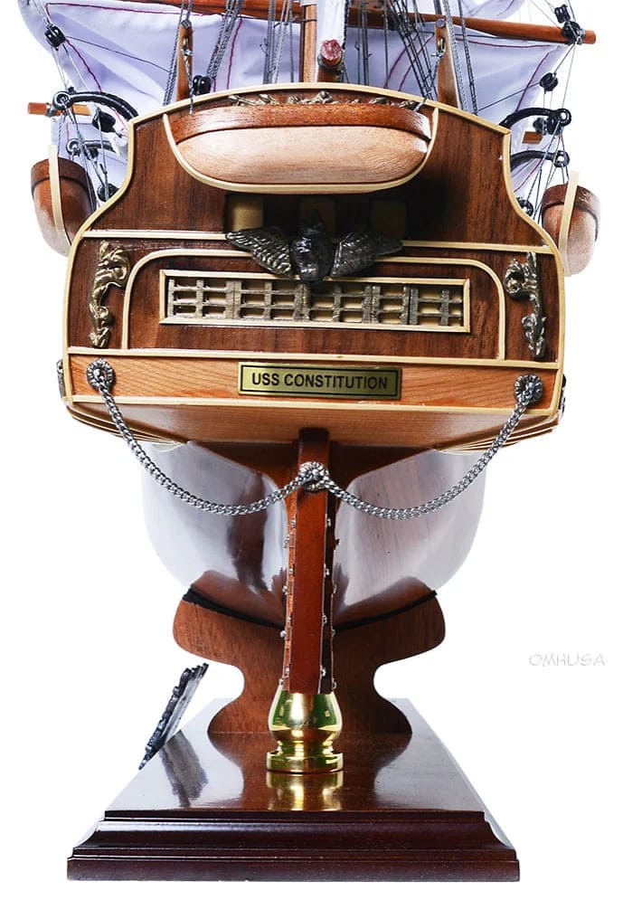 這艘令人驚嘆的 USS 憲法模型特點除木框架施工法外,雙層甲板和船兩側一整排兇猛的金屬大砲以及四層高的帆亦是主要特色。